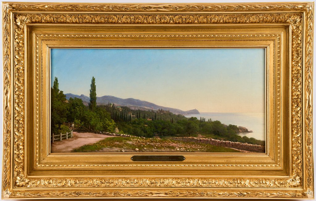 Сильный пейзажный блок продолжают Сильвестр Щедрин, «Итальянский пейзаж» (1824), П.П. Верещагин, «Крымский пейзаж. Вид на Алупку» (1870-е — первая половина 1880-х годов), А.В. Гине, «Надвигается. Перед грозой» (третья четверть XIX века), а также крымские виды Г.П. Кондратенко, «Гурзуф. Медведь гора» (1900), А.И. Мещерский, «Крымский пейзаж. Парк» (1869) и А.Н. Шильдер, «Лес на горном склоне» (1884). Особое место среди крупных вещей занимает К.Я. Крыжицкий, «Лесной пейзаж. (Урал)» (1898) — масштабное произведение, способное придать вес и статус любому собранию.
